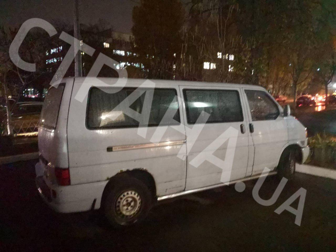 Жители дома рассказали, что недавно у автомобиля Алексея кто-то ночью пробил колесо. И действительно, левое заднее колесо на машине оказалось спущено. Машину "святошинского стрелка" узнать легко: это белый "бусик" со значком "инвалид".