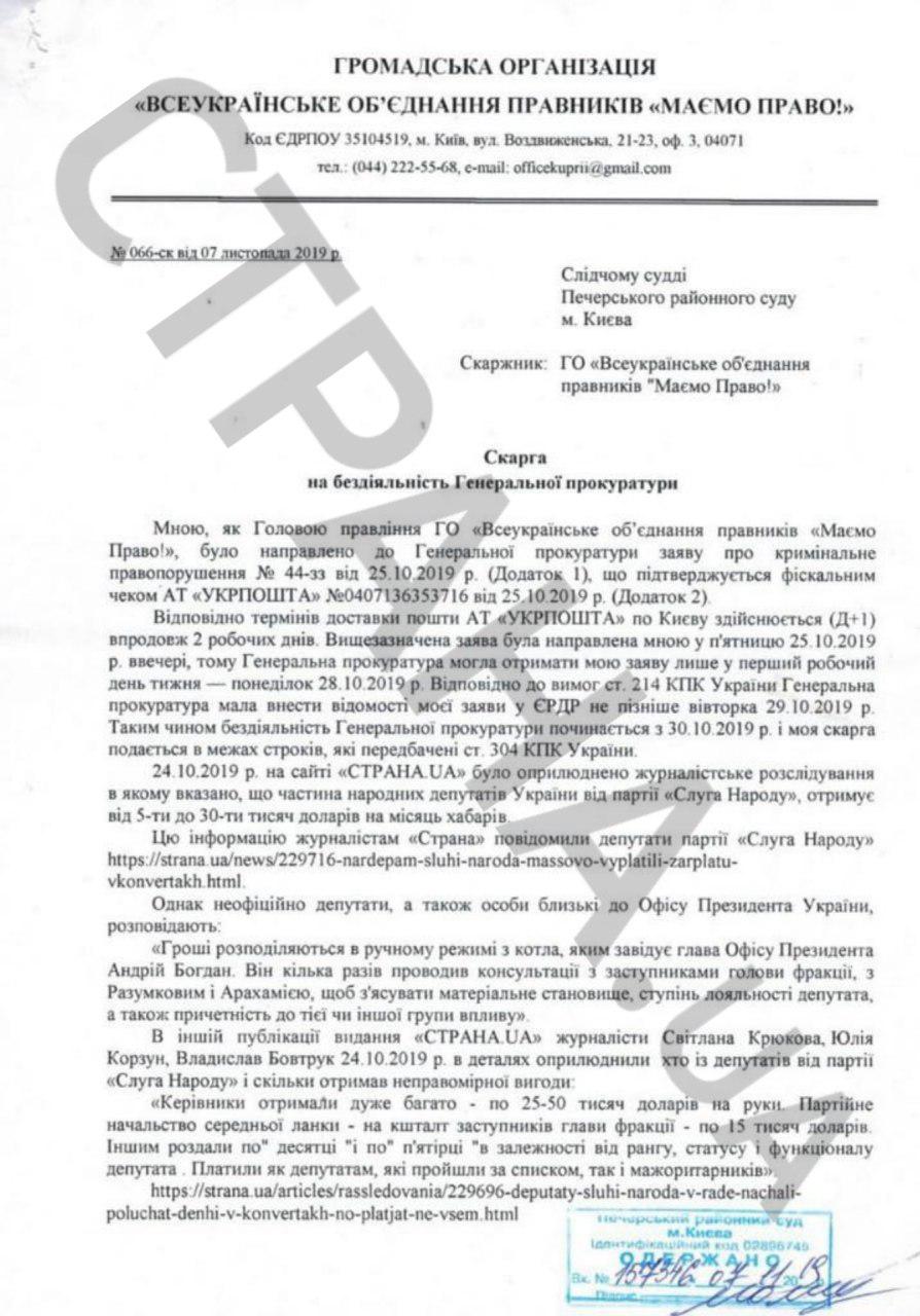 "Я внимательно просмотрел материал "Страны" и публикации Светланы Крюковой (заместитель главного редактора "Страны" - Ред.) по теме получения "Слугами народа" зарплат в конвертах. Я длительное время занимаюсь правозащитной и антикоррупционной деятельностью, поэтому все публикации собрал в одно сообщение и направил в НАБУ, САП и, самое главное, генпрокурору. Так как заплаты в конвертах - это незаконная выгода, я потребовал открыть уголовное дело, чтобы исследовать все обстоятельства, - сказал Куприй. И уточнил, что по закону, на открытие дела дается 24 часа.