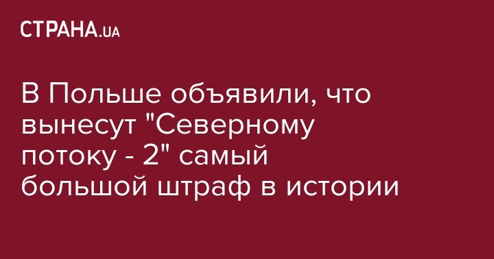 "UOKiK в приглашении для журналистов анонсировал, что на пресс-конференции будет объявлено последнее решение главы UOKiK по делу о строительстве газопровода Nord Stream 2, а также самый высокий штраф для компании в истории UOKiK", - сообщают польские журналисты.