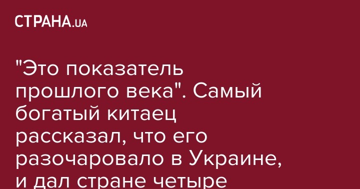 "Это показатель прошлого века". Самый богатый китаец рассказал, что его разочаровало в Украине, и дал стране четыре совета