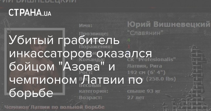 Как выяснилось, убитый – 27-летний боец батальона "Азов" Юрий Вишневецкий (позывной "Славянин"). Любопытно, что Вишневецкий ранее проживал в Латвии и профессионально занимался вольной борьбой, в свое время был даже чемпионом страны.