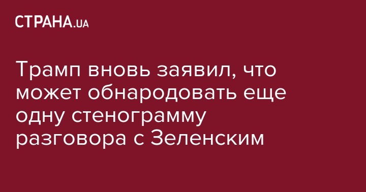 Президент США Дональд Трамп заявил, что готов опубликовать еще одну стенограмму телефонных переговоров с украинским лидером Владимиром Зеленским. Как сообщает УНН, неожиданное заявление американский лидер сделал перед журналистами на Южной лужайке Белого дома перед вылетом в штат Джорджия.