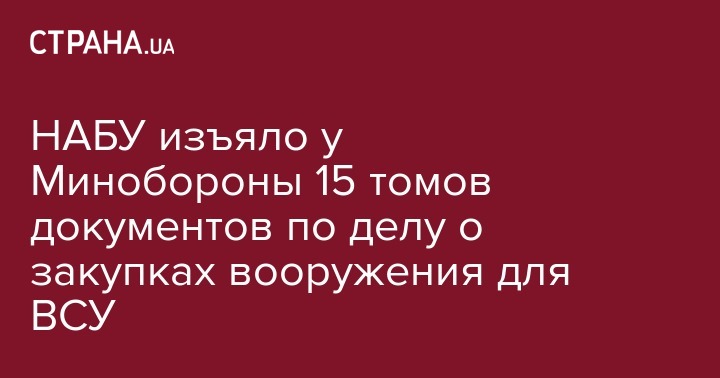 В Национальном антикоррупционном бюро изъяли около 15 томов документов в одном из подразделений Минобороны в рамках расследования по фактам закупки в прошлые годы вооружений и военной техники для нужд ВСУ. Об этом сообщили в пресс-службе Министерства обороны.
