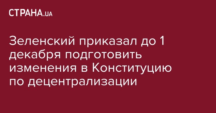 Зеленский приказал до 1 декабря подготовить изменения в Конституцию по децентрализации