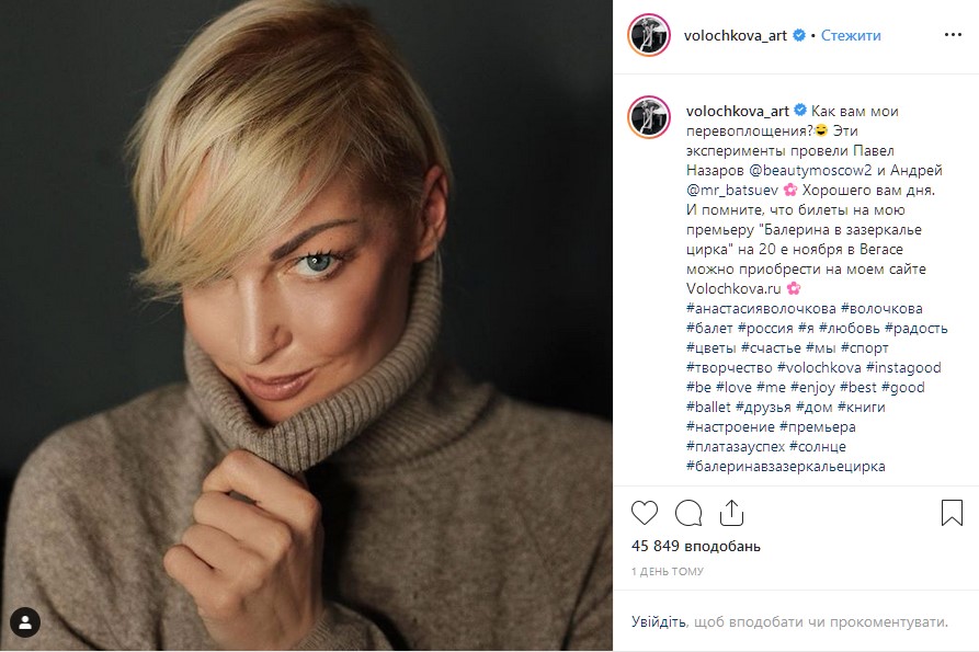 Российская экс-балерина Анастасия Волочкова решила кардинально сменить образ, в связи с чем коротко подстриглась. Снимок она опубликовала в Instagram.