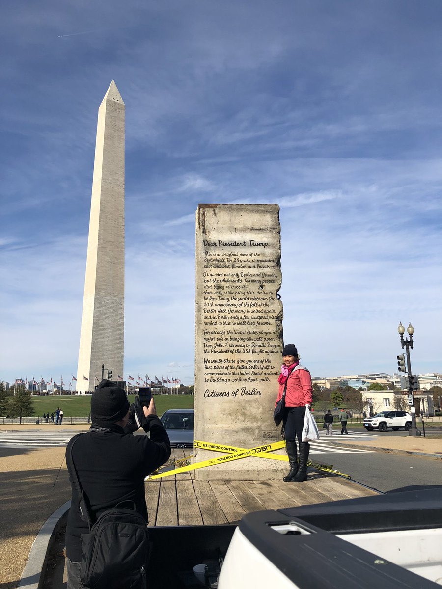Так, часть стены весом 2,7 тонн привезли в Вашингтон в субботу, 9 ноября. Организацией доставки занималась берлинская неправительственная организация Die Offene Gesellschaft.