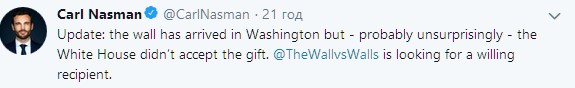 На обломке стены, которую отправили Трампу, есть надпись. Она гласит, что ни одна стена не существует вечно.