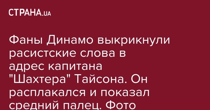 Фаны Динамо выкрикнули расистские слова в адрес капитана "Шахтера" Тайсона. Он расплакался и показал средний палец. Фото