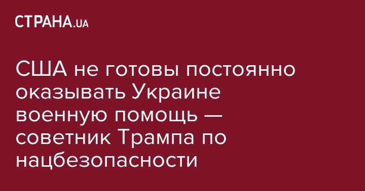 США не готовы постоянно оказывать Украине военную помощь — советник Трампа по нацбезопасности