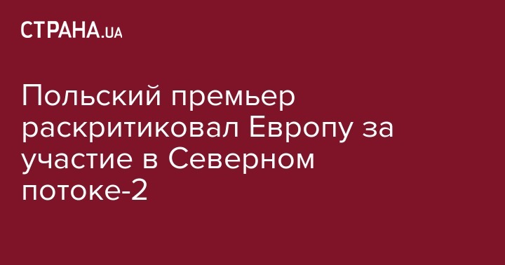 Премьер-министр Польши Матеуш Моравецкий раскритиковал европейские страны за то, что они вкладывали свои деньги в строительство российского газопровода "Северный поток-2". Об этом сообщает Financial Times.