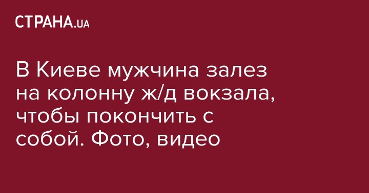 В Киеве мужчина залез на колонну ж/д вокзала, чтобы покончить с собой. Фото, видео