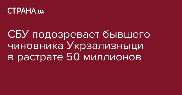 СБУ подозревает бывшего чиновника Укрзализныци в растрате 50 миллионов