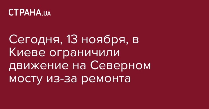 Сегодня, 13 ноября, в Киеве ограничили движение на Северном мосту из-за ремонта
