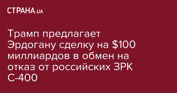 Трамп предлагает Эрдогану сделку на $100 миллиардов в обмен на отказ от российских ЗРК С-400