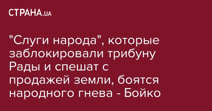 Сегодняшнее блокирование трибуны парламента "слугами народа" на фоне рассмотрения Радой законопроекта о рынке земли показало, что они боятся гнева народа. Об этом Юрий Юойко, сопредседатель "Оппозиционной платформы - За жизнь" заявил журналистам в кулуарах Верховной Рады, пишет сайт политсилы.