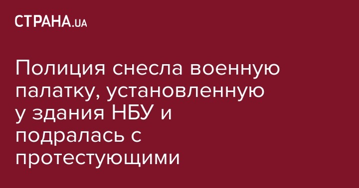Полиция снесла военную палатку, установленную у здания НБУ и подралась с протестующими