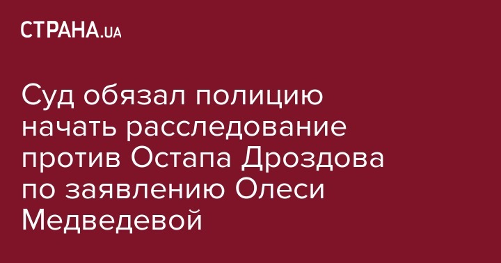 Шевченковский суд Киева решением от 12 ноября обязал Национальную полицию Киева начать расследование по заявлению специального корреспондента "Страны" Олеси Медведевой относительно разжигания ненависти Остапом Дроздовым.