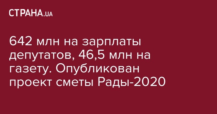 642 млн на зарплаты депутатов, 46,5 млн на газету. Опубликован проект сметы Рады-2020