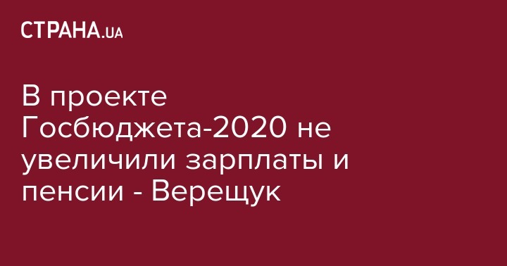 В проекте Госбюджета-2020 не увеличили зарплаты и пенсии - Верещук