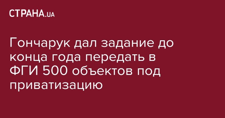 Премьер-министр Украины Алексей Гончарук поручил министерствам и другим центральным органам власти ускорить подготовку и уже в этом году передать не менее 500 объектов в Фонд государственного имущества Украины на приватизацию. Об этом сообщает пресс-служба правительства.