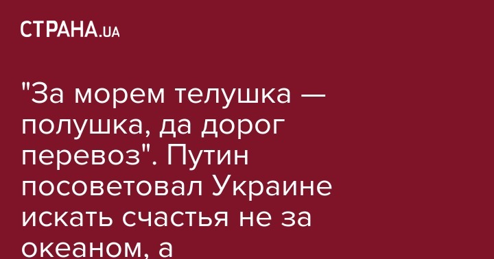 "За морем телушка — полушка, да дорог перевоз". Путин посоветовал Украине искать счастья не за океаном, а договариваться с соседями