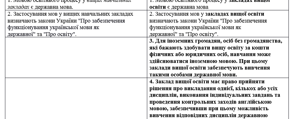 Язык образования в его тексте упоминается два раза. Это во-первых касается обучения иностранцев в Украине, при условии, что они сами платят за обучение.