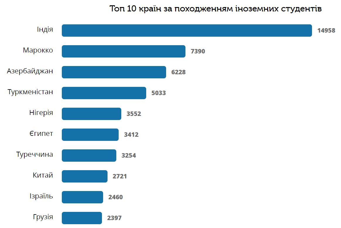 Вот официальные данные Минобразования, откуда в Украину едут зарубежные учащиеся.