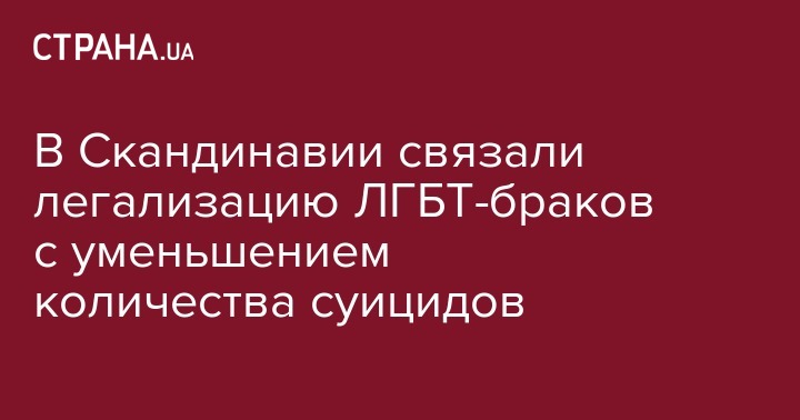 Исследователи Датского научно-исследовательского института и Стокгольмского университета сравнили показатели суицидов в периоды с 1989 года по 2002 год и с 2003 года по 2016 год. Результаты показали что, после легализации однополых браков количество суицидов в Скандинавии снизилось на 46%. Об этом пишет The Guardian.