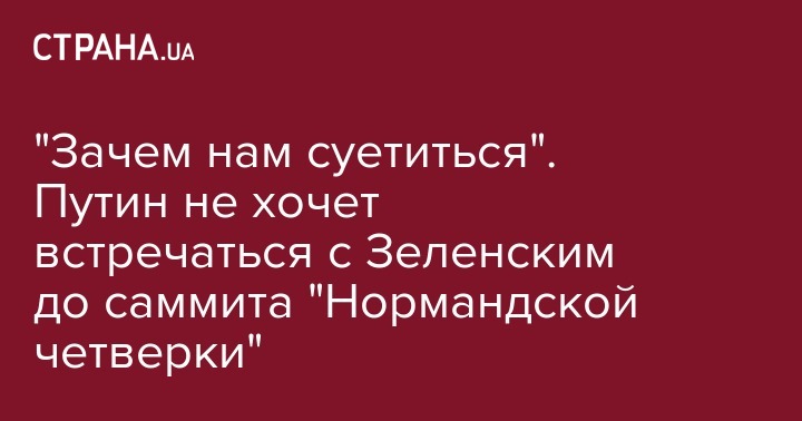 "Мы договорились встретиться в "Нормандском формате". Зачем нам суетится и бегать на неподготовленные встречи. В этом никто не заинтересован - ни я, ни президент Зеленский. Мы же должны выйти с каким-то результатом. Также мы в контакте, мы разговариваем по телефону. Но нам нужно подойти к каким-то решениям. Встреча в нормандском формате возможна", - заявил Владимир Путин.