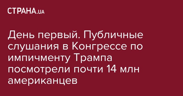 За ходом первого дня публичных слушаний в рамках расследования об импичменте президента США Дональда Трампа в прямом эфире следили около 13,8 миллиона американцев. Об этом сообщает Радио Свобода.