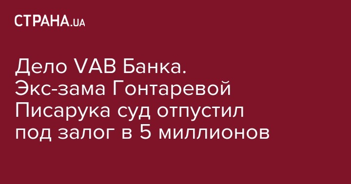 Высший антикоррупционный суд принял решение отпустить под залог в 5 миллионов гривен бывшего первого заместителя главы Нацбанка Валерии Гонтаревой Александра Писарука. Об этом стало известно во время сегодняшнего заседания.