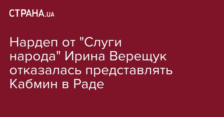 Ирина Верещук, народный депутат от партии "Слуга народа", заявила о том, что слагает с себя полномочия представителя Кабинета министров в Верховной Раде.