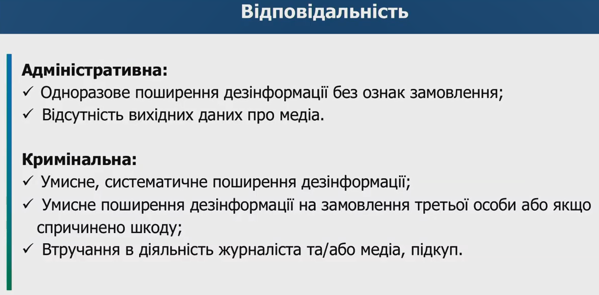 Ну, и самая ожидаемая часть. В министерстве Бородянского предлагают ввести уголовную ответственность за дезинформацию.