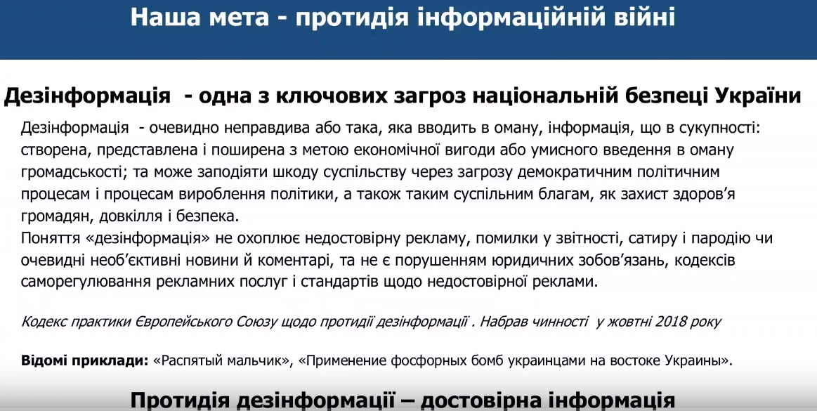 После этого Максимчук зачитал определение дезинформации, которое используют в ЕС.