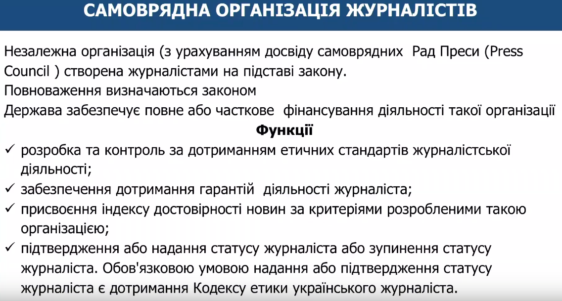 Критерием того, журналист человек или нет – будет "Кодекс этики украинского журналиста", который будет писать финансируемое государством учреждение.