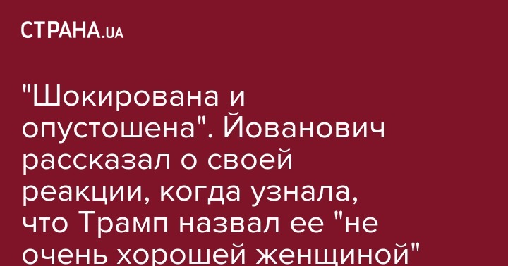 Она также заявила, что почувствовала "некую угрозу", когда Трамп сообщил ей, что "ей придется столкнуться с чем-то", добавив, что его комментарии "внушают страх". По словам Йованович, ее также беспокоило отсутствие защиты со стороны американской администрации и то, что ее авторитет в Украине был подорван. Она отметила, что не хотела, чтобы ее карьера "заканчивалась таким образом".