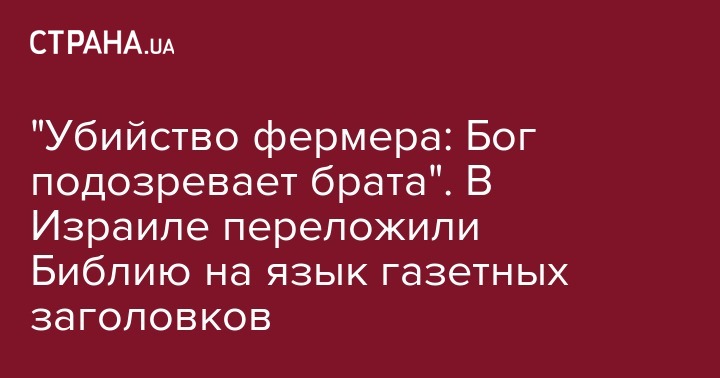 "Убийство фермера: Бог подозревает брата". В Израиле переложили Библию на язык газетных заголовков