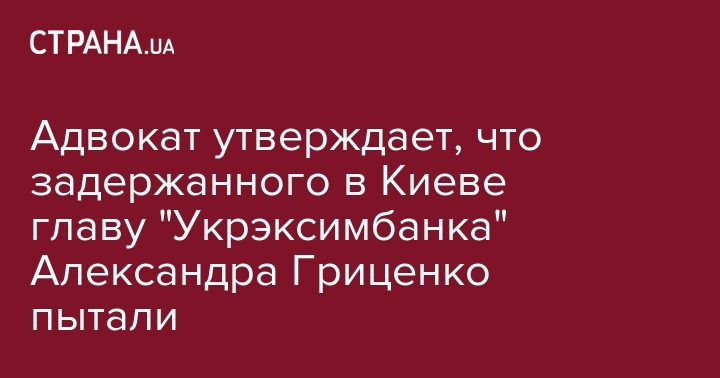 Адвокат главы "Укрэксимбанка" Александра Гриценко Денис Галанский заявил, что его подзащитного задержали с нарушением закона и пытали. Об этом передает "Интерфакс-Украина".