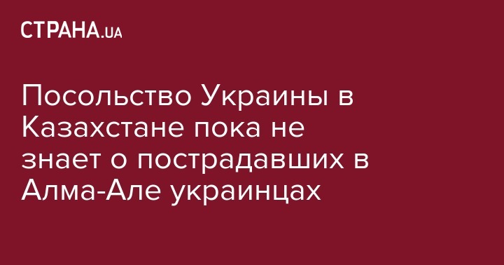 Посольство Украины в Казахстане проверяет информацию о возможном наличии граждан Украины среди пострадавших в результате стрельбы в Алма- Ате. Об этом говорится в сообщении посольства на официальной странице в социальной сети Facebook, передают "Украинские новости".