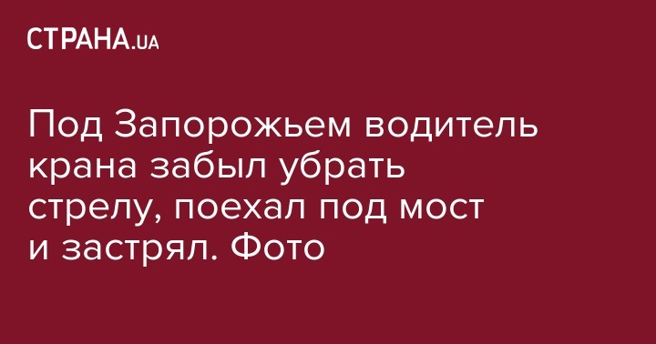 На развязке "Кленовый лист" в Энергодаре водитель крана, проезжая под мостом, не рассчитал габариты и застрял.