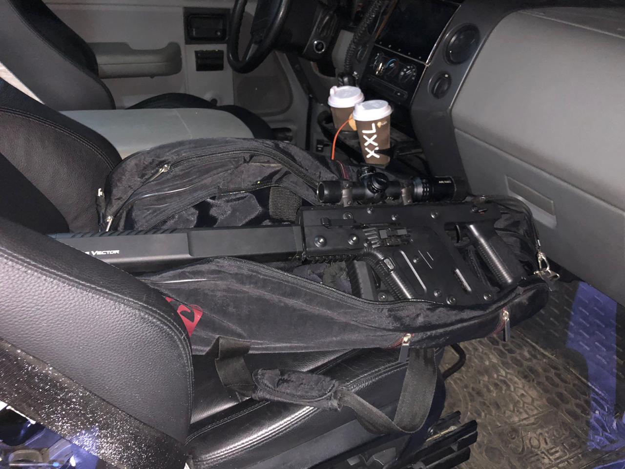 При осмотре в салонах иномарок были обнаружены четыре единицы нарезного оружия разных калибров ("Sovage", "GSG 5", "Оружейник Z", "Kriss Vector") и одно гладкоствольное ружье "ATA arms" 22 калибра с сотней боеприпасов к ним.