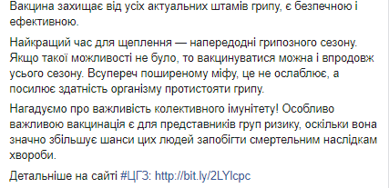 В ЦОЗ отмечают, что лучшей профилактикой гриппа является ежегодная вакцинация, которая уменьшает риск заболеть гриппом, а также уменьшает риск серьезных осложнений, госпитализации и смерти.