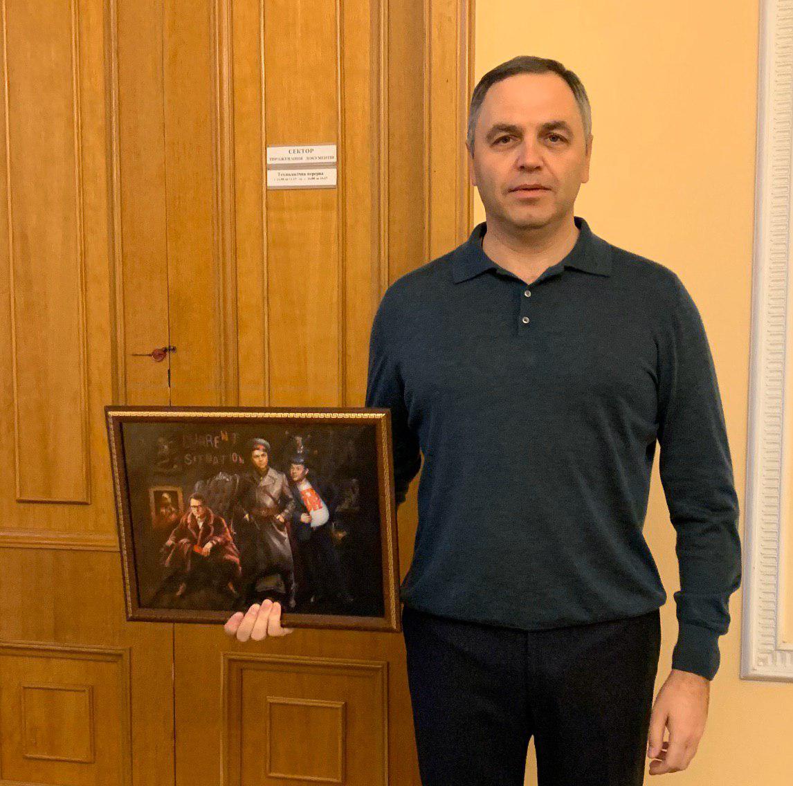По мотивам НКВД. Портнову во время его визита в Офис президента подарили картину от замглавреда "Страны"
