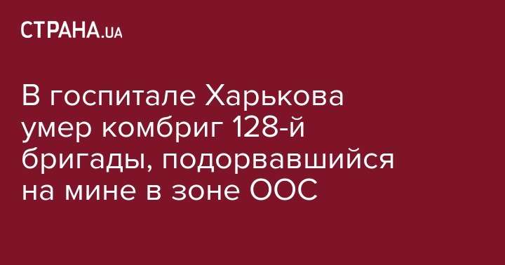 В Харьковском военно-медицинском клиническом центре Северного региона утром 19 ноября от полученных ранений умер командир 128-й отдельной механизированной бригады Евгений Коростелев. Об этом сообщает "Украинский милитарный портал".
