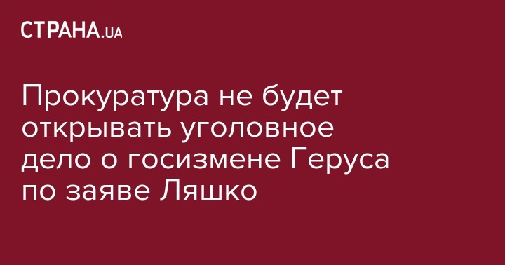 Прокуратура отклонила заявление лидера Радикальной партии Олега Ляшко, в котором он уличает в госизмене нардепа от "Слуги народа" Андрея Геруса и требует возбудить против него уголовное дело. Об этом Ляшко сообщил в эфире телеканала "112 Украина".