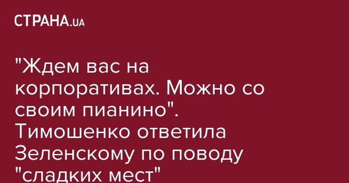 "Ждем вас на корпоративах. Можно со своим пианино". Тимошенко ответила Зеленскому по поводу "сладких мест"