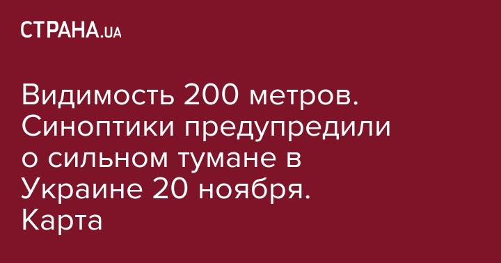 "Утром 20 ноября во большинстве областей Украины -туман, видимость 200-500 метров" - говорится в сообщении гидрометцентра.
