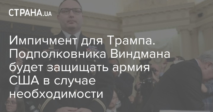 Армия Соединенных Штатов Америки в случае необходимости будет защищать подполковника Александра Виндмана, который свидетельствует против президента США Дональда Трампа в деле об импичменте. Ему могут предоставить убежище на одной из военных баз Пентагона. Об этом сообщает агентство Reuters.