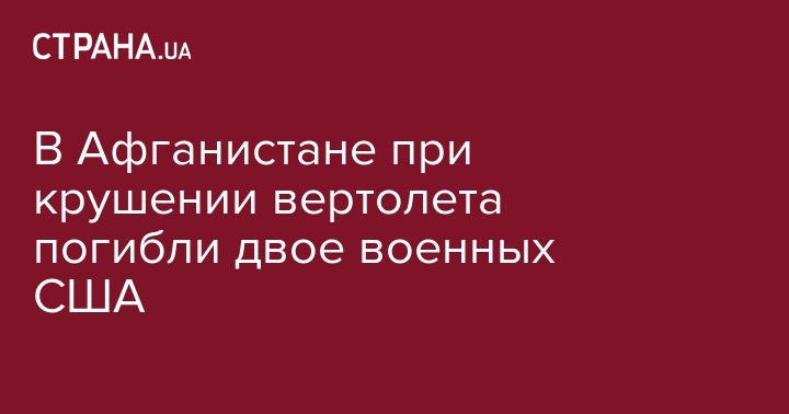 В следствие аварии вертолета в Афганистане погибли двое военнослужащих Соединенных Штатов Америки. По предварительным результатам расследования авария случилась не из-за обстрела противника. Об этом сообщает"Радио Свобода".