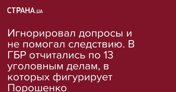 Сам Порошенко лишь три раза явился на допросы, а 20 раз - проигнорировал их. По утверждению ГБР, на допросах он не помогал следователям в установлении истины по делу.